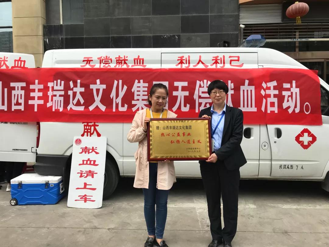 山西丰瑞达文化集团呼吁社会更多爱心人士参与到无偿献血的队伍中。献血的你,生命涌动;你献的血,灵魂如虹!