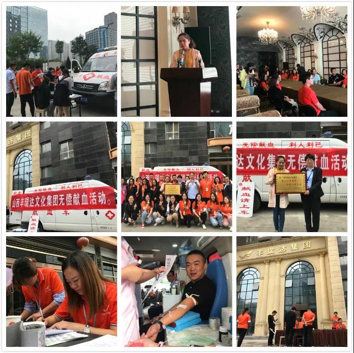2018年9月10日,山西丰瑞达文化集团与太原市红十字血液中心共同组织了丰瑞达员工无偿献血活动。